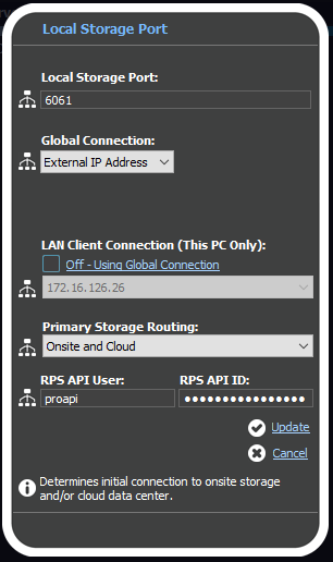 Local Storage Port: The event retrieval port if local storage drives are recording on the backup bridge. This port may need to be port forwarded in the client's router, in order to retrieve events outside of the local area network.