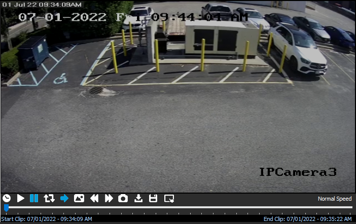 The trackbar can allow the user to quickly scroll through the entire event. When the mouse is hovered over the trackbar, the application automatically will pause. You can also see the start and end time of the event clip.