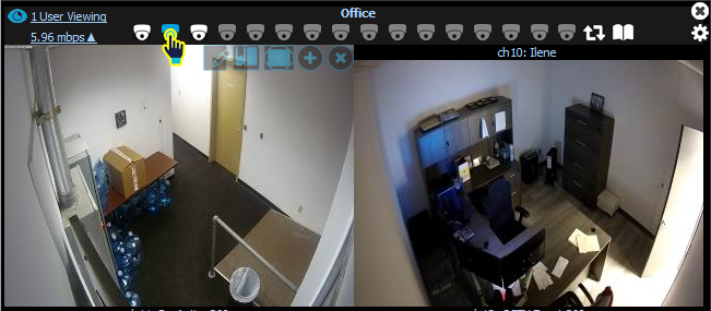 Camera Stream Functions: When hovered over a camera, icons will appear with certain functions: