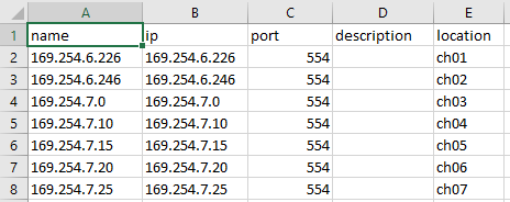 IP Camera File Import (.csv):