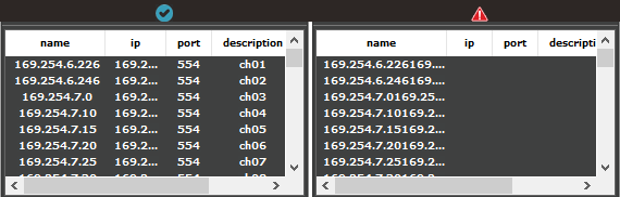 A successful import will display the preview import grid with the cameras you entered.