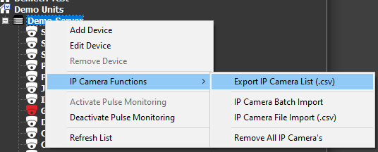 Export IP Camera List (.csv):